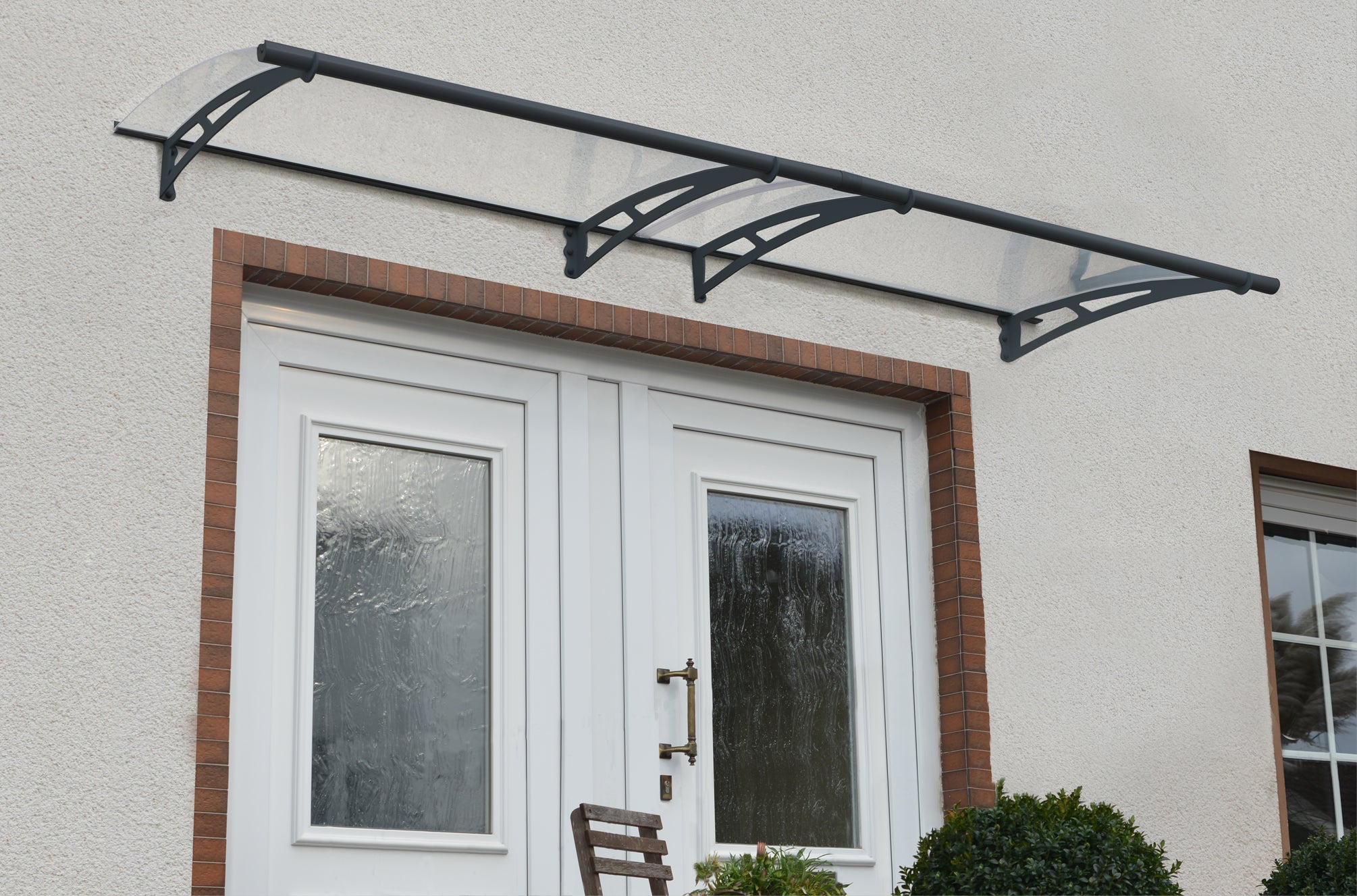 Our contemporary overdoor canopies are renowned for their high quality and durability as well as their sleek design. Adding distinction and style to any property, the canopies are manufactured using steel and clear solid polycarbonate sheeting, giving a sleek modern look.