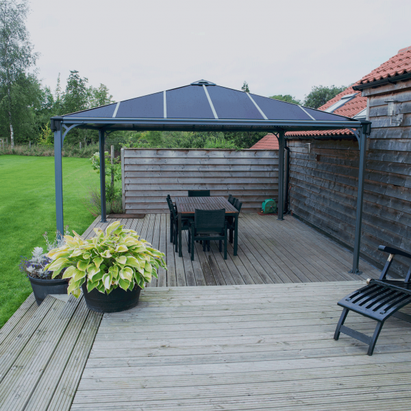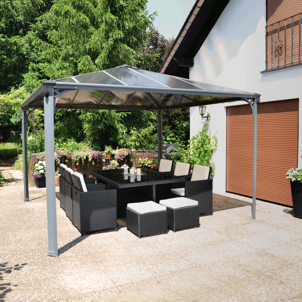 We have selected two models for our range, the Verona Pergola and the Parma Pergola. Both Aluminium Pergolas are available with an Anthracite Grey (RAL7024) frame and both are suitable for domestic or commercial use.