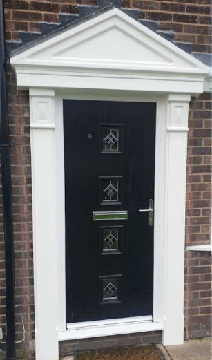 The apex style canopy roof and simple door surrounds make the perfect combination. Both aesthetic and practical, this beautiful door surround with apex canopy makes a great addition to both new and period properties.