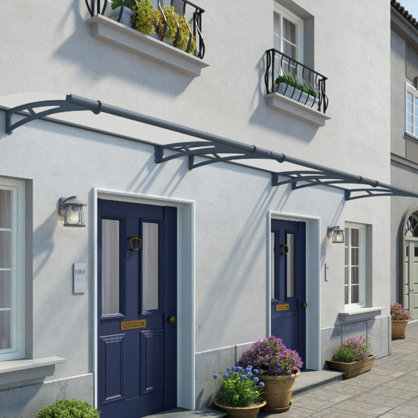 The dark grey Walbrook 4500 is one of the widest of our contemporary over door canopies and has a width of nearly 15ft. Due to its size this over door canopy will provide shelter over any size doorway, single or double door as well as covering any windows or even another entrance door.