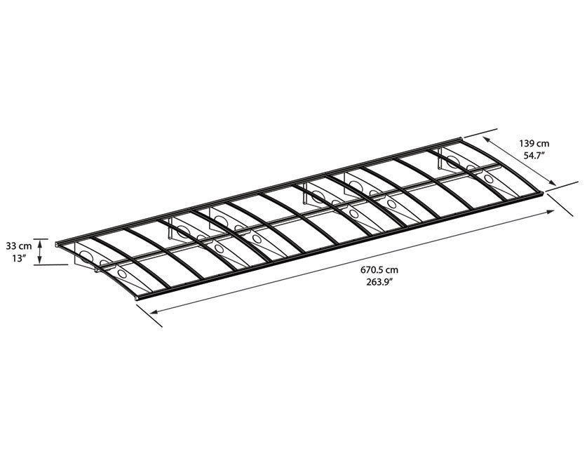 The rust resistant aluminium frame is coupled with dark grey steel arms ensuring durability and stability. This elegant over door canopy includes a front gutter and hidden rubber gasket which helps to direct rain and snow off the sides, keeping your entrance clear and clean.
