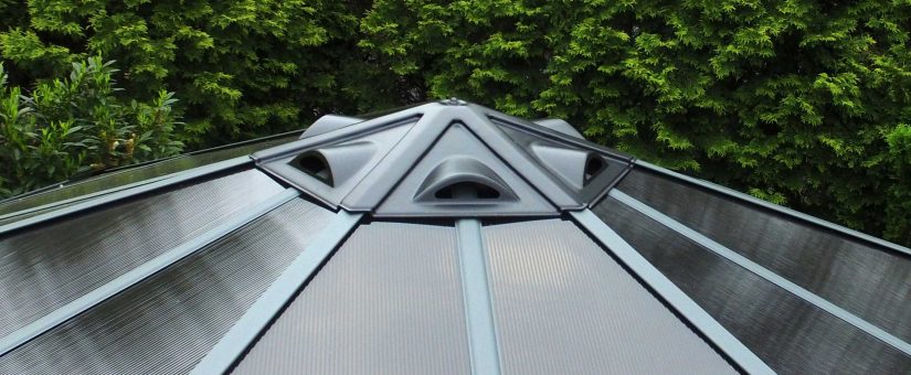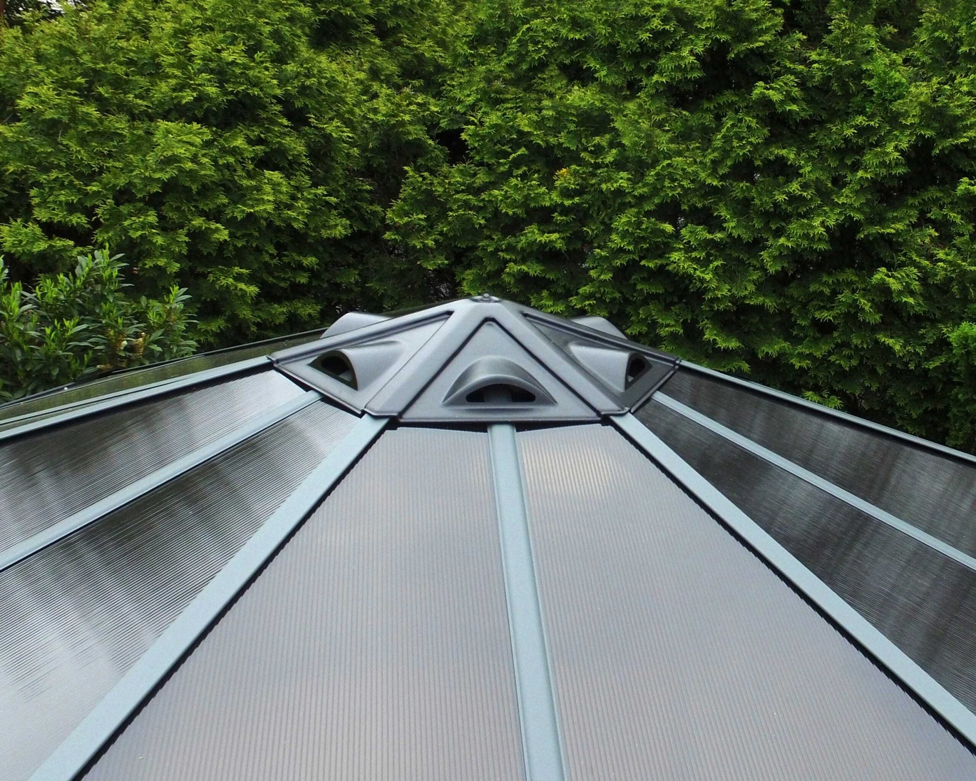 Included within the Crescent Canopy Kit are the gutters, sliding roof system and anchoring kit. The Crescent is designed to be installed on concrete footings, piers, or any solid level surface. The post dimensions are 80mm x 80mm. The external canopy dimensions are: 502cm length x 362cm width x 242cm height. The Crescent covers an area of 18.2 m2; can withstand snow loading of 150 kg/m2; and is wind resistant up to 150 kph.