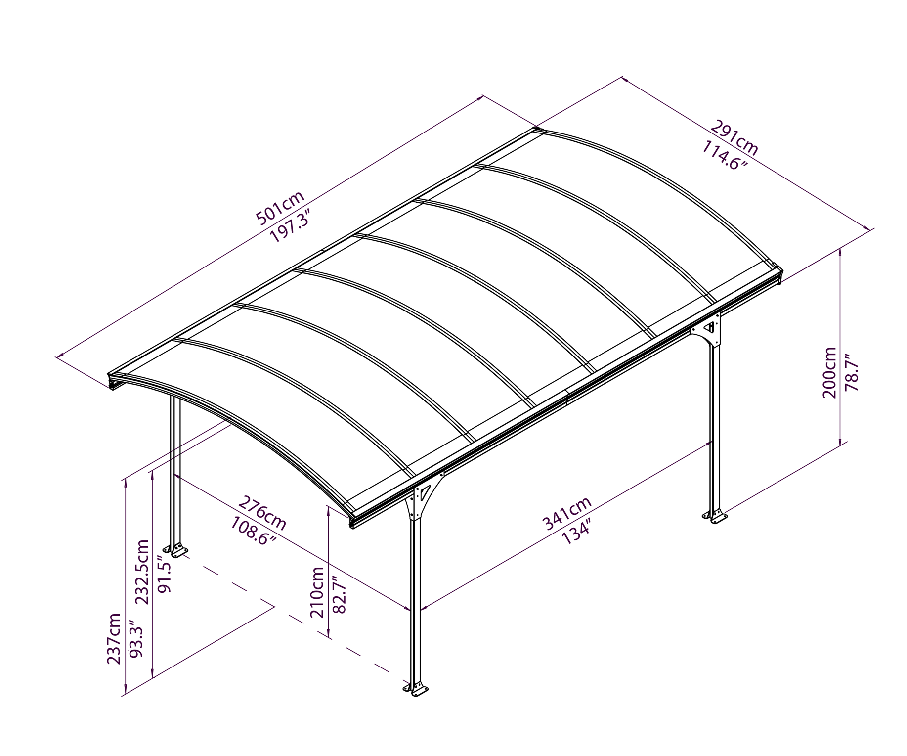 The Derby 5000 carport main frame is constructed from durable rust-resistant powder coated aluminium and galvanised steel, which provides a virtually maintenance free structure. This stunning design offers wide and easy access to store your car conveniently.