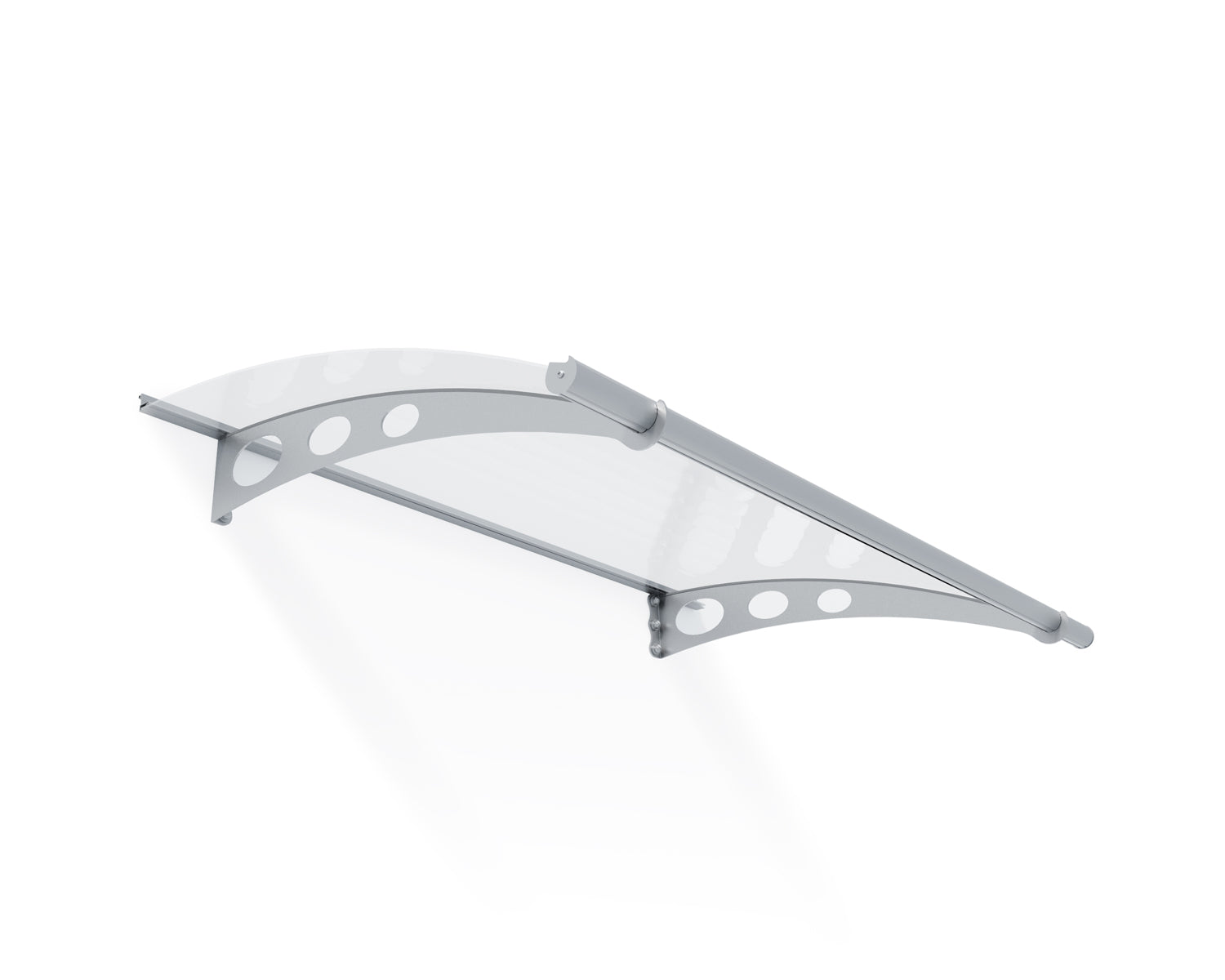 The Kensington 1505 porch door canopy is made from high quality aluminium and stainless steel, and is designed to provide shelter and protection from the elements while also enhancing the appeal of the front of your home. The 4mm solid polycarbonate roof is 100% UV protected, and made to last, maintaining its crystal clear appearance and effectiveness for many years to come.