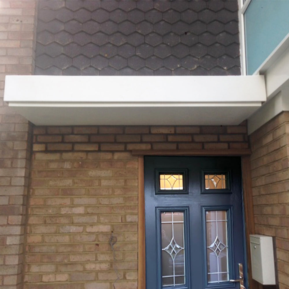 The flat roof design with no brackets makes the Campton overdoor canopy both sleek and modern. Available in white or grey as standard, these door canopies make a lovely addition to any home of business property.