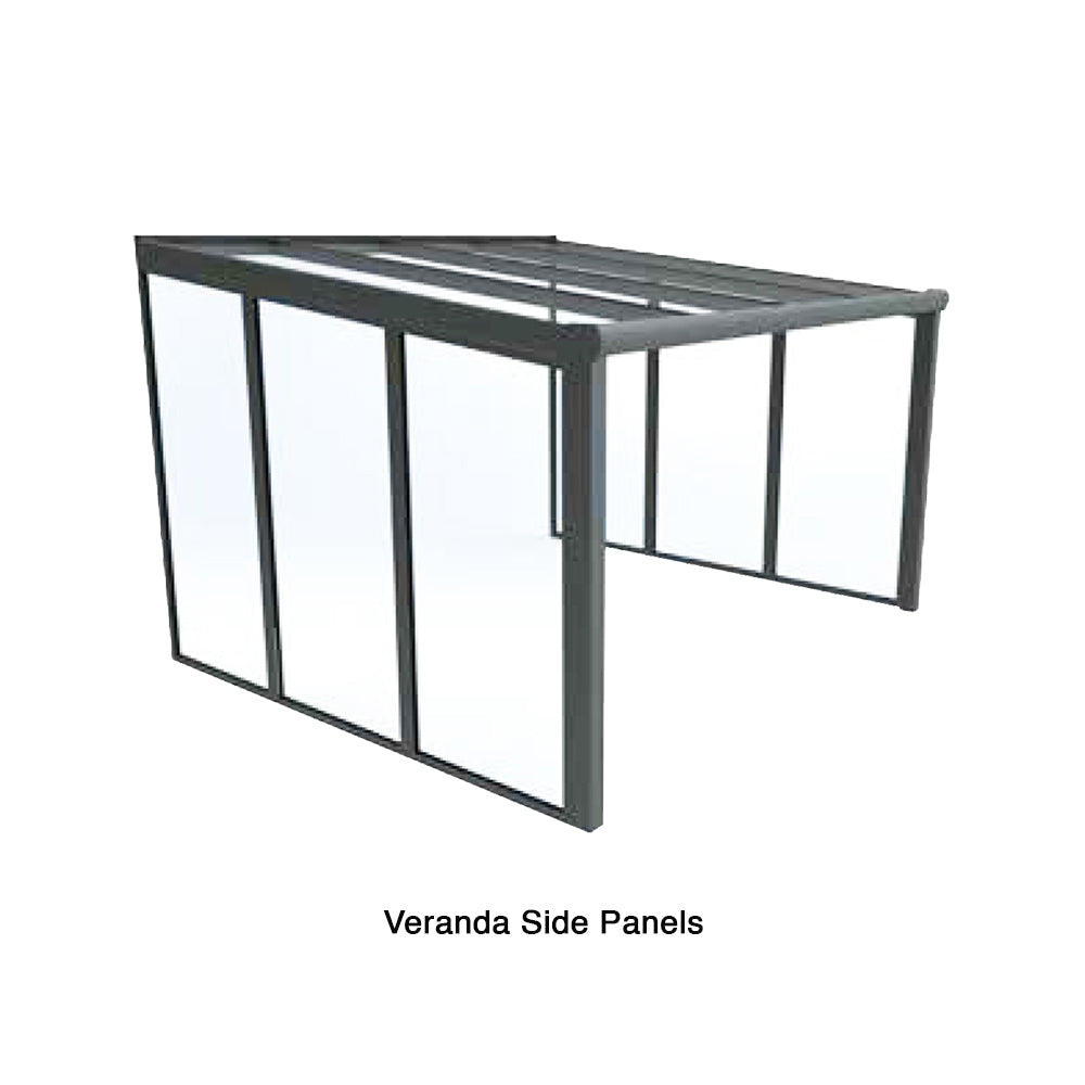The new range of Side Panels available for sale from The Canopy Shop are specially designed to fit the Homestyle Veranda. The Side panels are strong enough to withstand strong winds and provide a way of sealing off either end or the front of the canopy as required while allowing you to continue to enjoy your garden. Our side panels can be glazed in either 16mm Multiwall Polycarbonate or 8.8mm laminated glass.